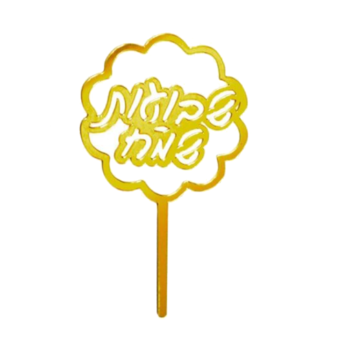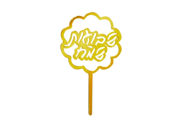 טופר אקרילי לעוגה שבועות שמח 11 ס"מ - זהב