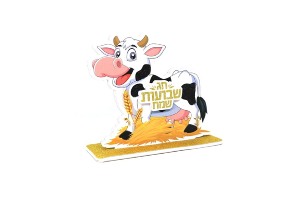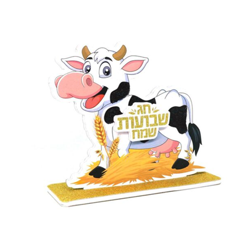 מרכז שולחן שבועות שמח פרה 7*14 ס"מ - לבן
