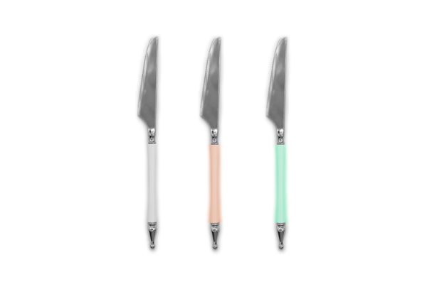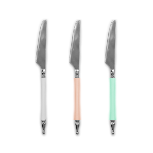 סכינים פלסטיק קשיחות כתר 10 יח' - צבע משתנה ורוד/לבן/כסף בשילוב זהב/כסף