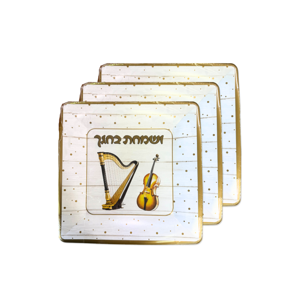 צלחת נייר 7 "ושמחת בחגך" 10 יח' - לבן, צלחת מהודרת לסוכות, מתאים לעיצוב שולחן חג