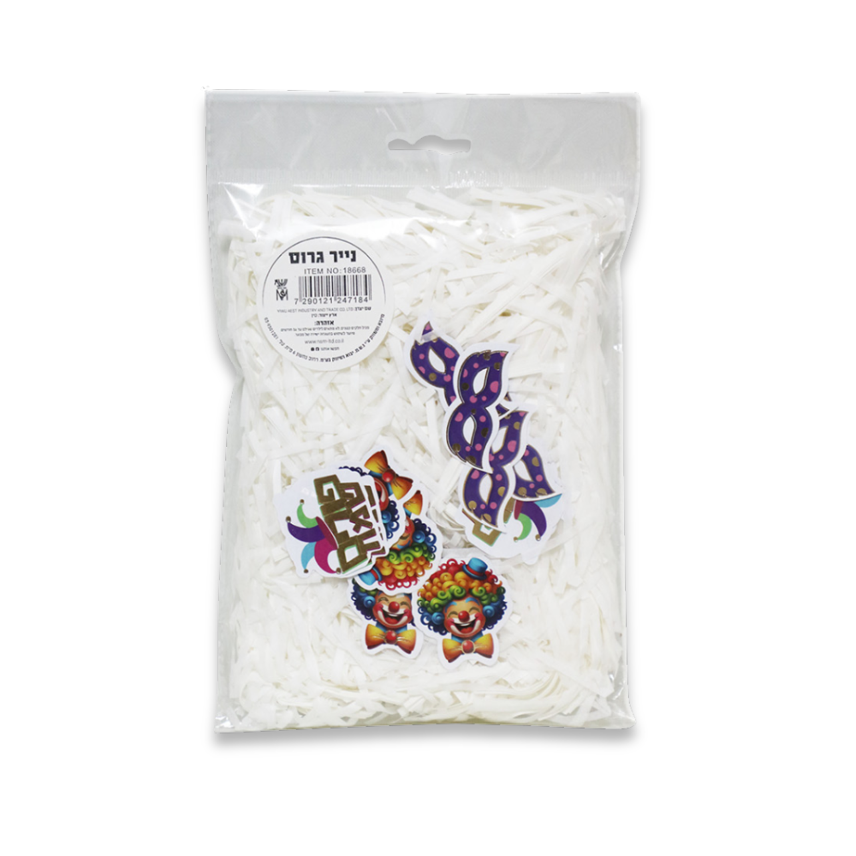 נייר גרוס + קונפטי ליצן לפורים - לבן,