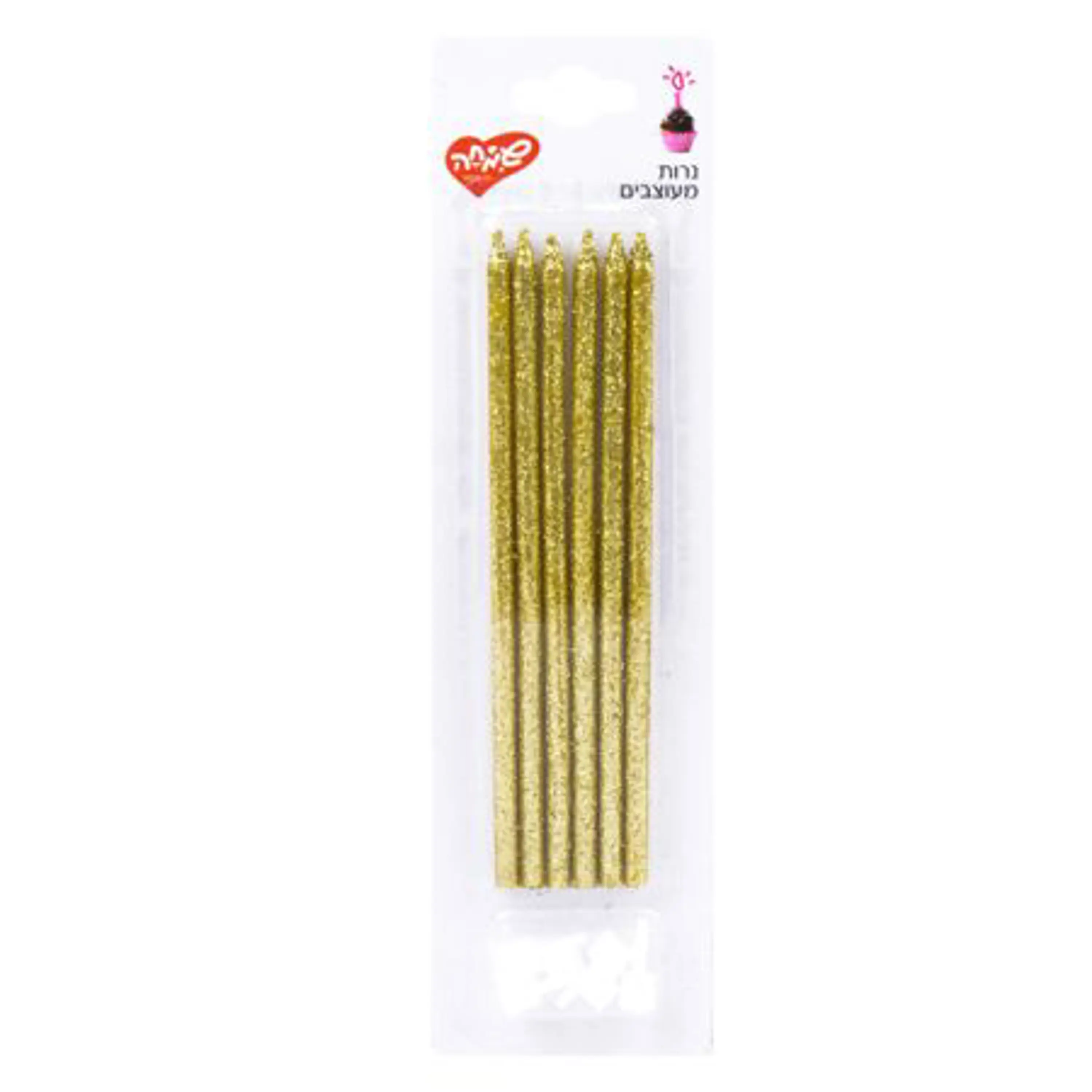 נרות יום הולדת גליטר ארוך 6 יח' - זהב,