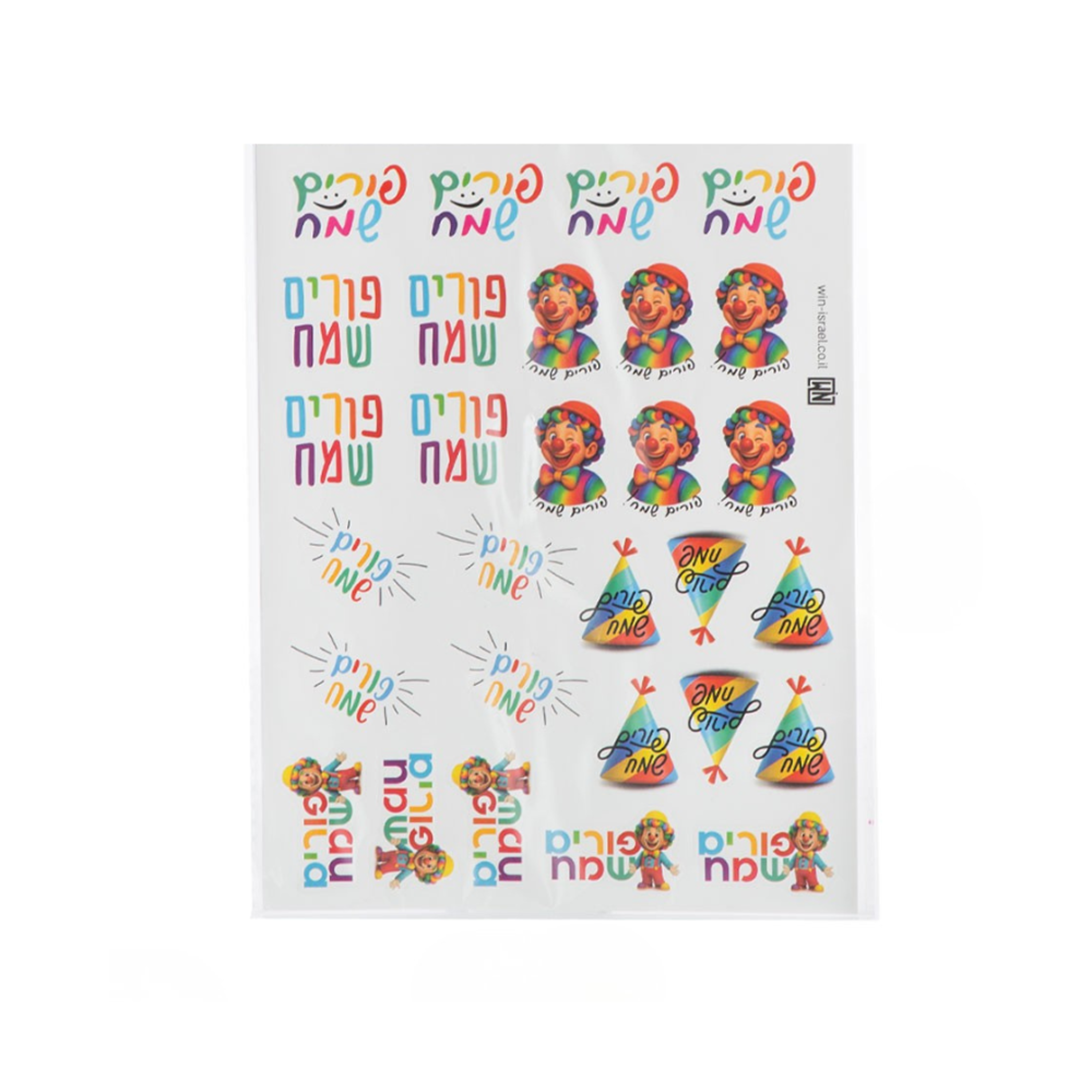 מדבקות פורים שמח 58 יח' - צבעוני ,