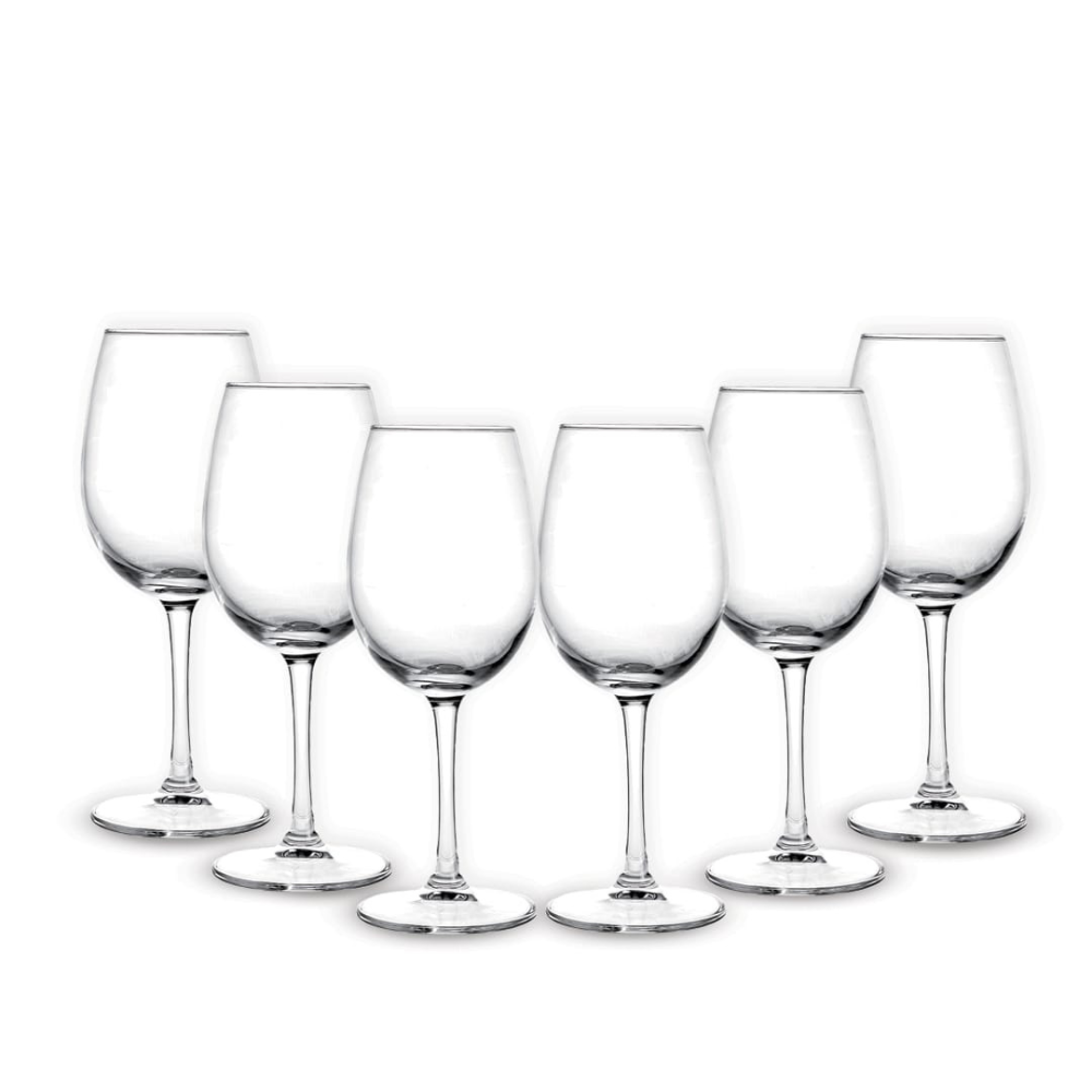 סט שישיית כוסות יין בנפח 350 מ"ל מזכוכית בעיצוב קלאסי ואלגנטי.