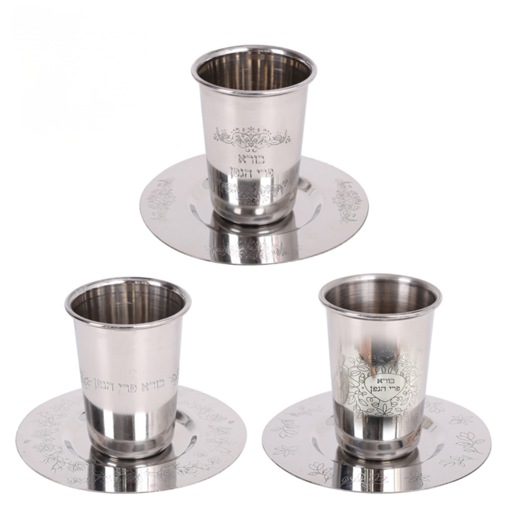 גביע קידוש נירוסטה מהודר עם תחתית - כסף,