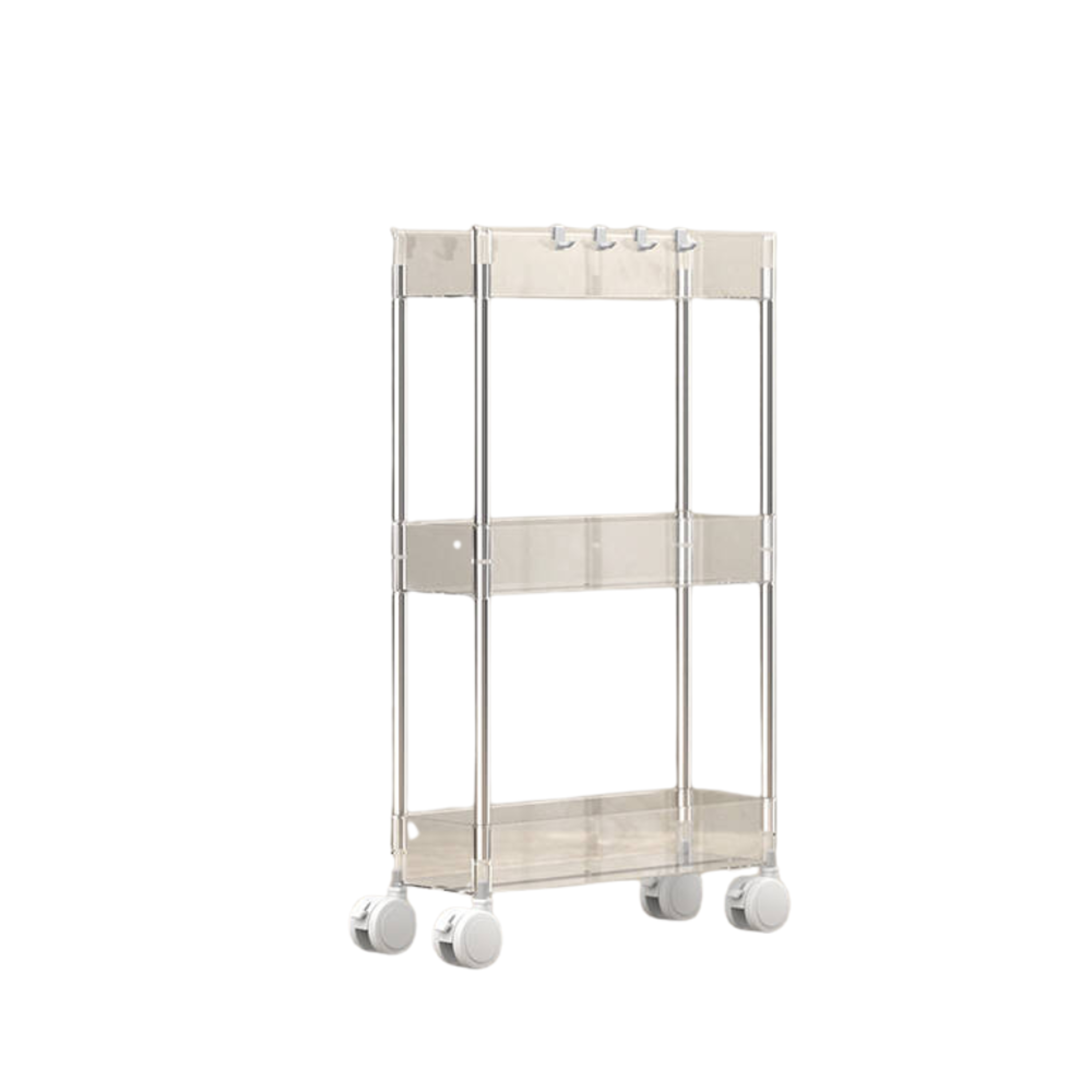 עגלה אקרילית עמידה וצרה עם 3 קומות לאחסון פריטים,