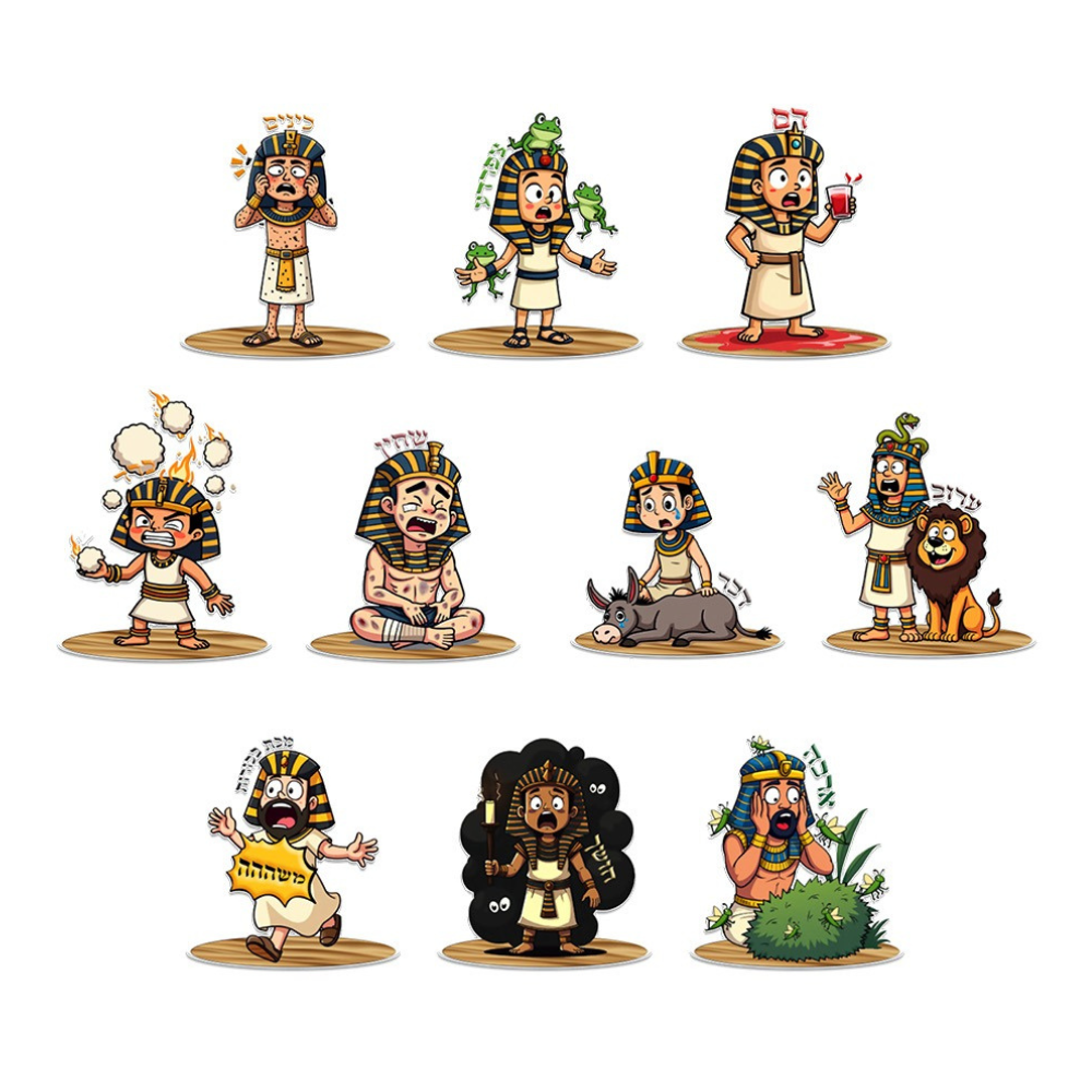 סט קישוטי שולחן לפסח 10 יח' בעיצוב עשרת המכות.