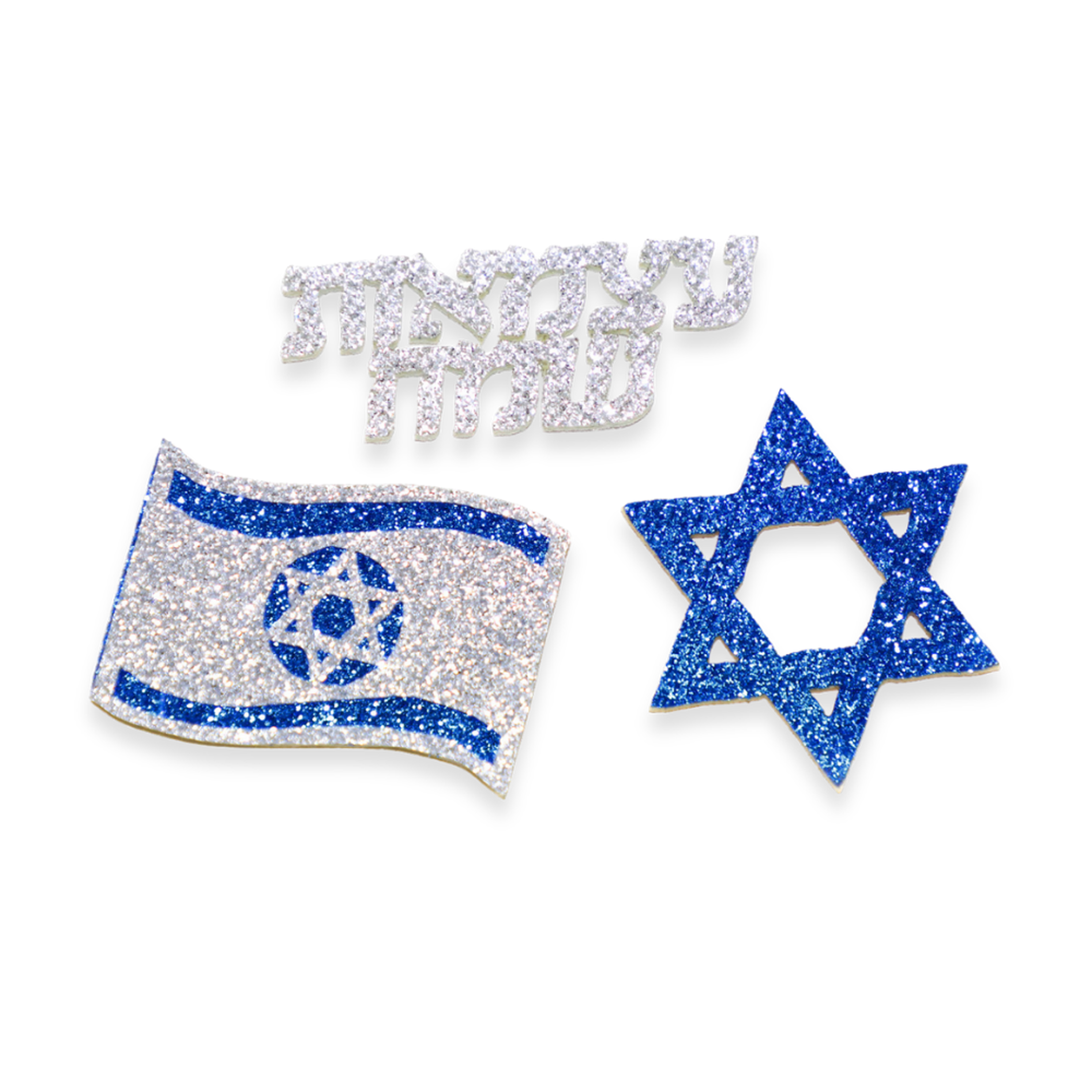 מארז קישוטי שולחן מרהיבים ליום העצמאות, עשויים מאלבד נצנץ בצבע כחול.